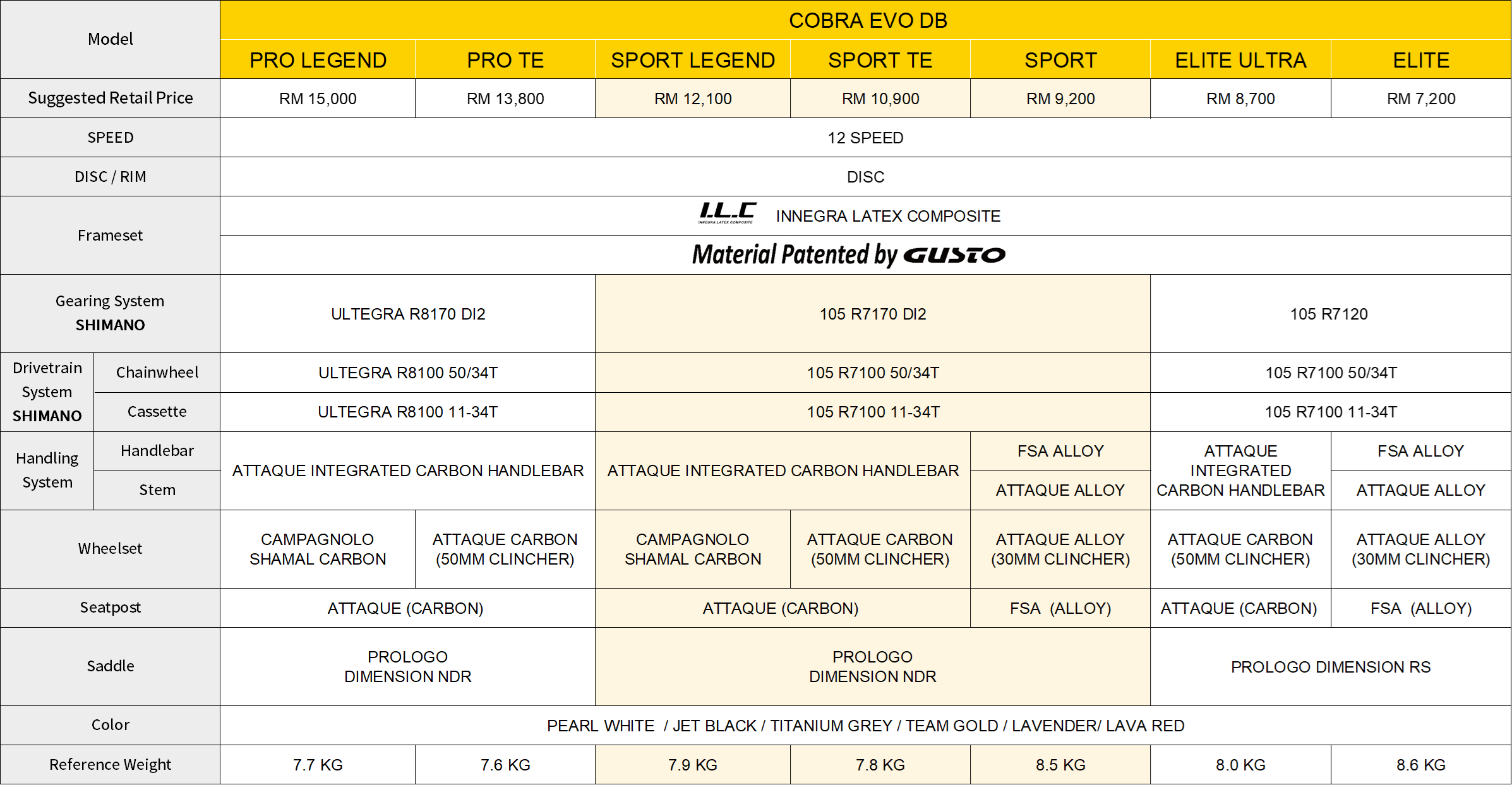 Currently, the world’s lightest high-performance carbon fibre is the advanced material INNEGRA from the United States. The GUSTO R&D team has exclusively developed their carbon composite patent technology to incorporate INNEGRA’s high modulus materials, the absorption properties of LATEX, and the T1000 High Performance Carbon Fiber from Japan to create a remarkably rigid, stable, and compliant GUSTO frame